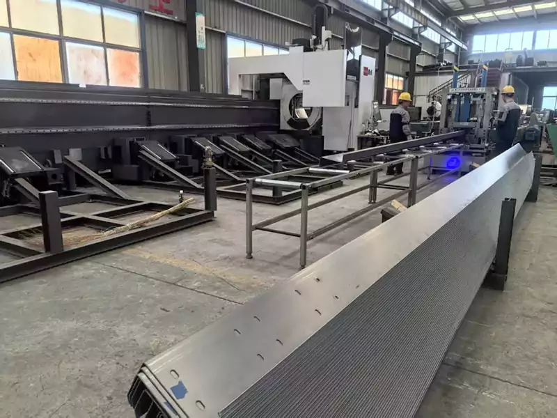 2. Пробијање: Опремљен ЦНЦ јединицом за пробијање, подржава вишеугаоно пробијање мрежа и прирубница, са толеранцијом пречника рупе од ±0,2 мм и прецизношћу размака рупа од ±0,3 мм. Такође може истовремено да произведе рупе у складу са америчким стандардним обрасцима повезивања челика Ц-пресека (као што су рупе за адаптер Симпсон Стронг-Тие).